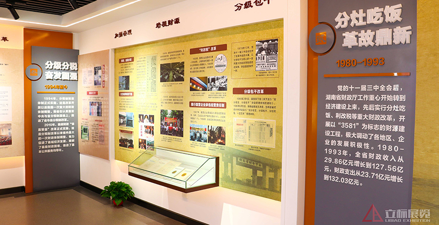 湖南省財(cái)政廳歷史陳列館是一個(gè)湖南省財(cái)政歷史的象征和文化建設(shè)的重要標(biāo)志,是展示歷史、文化傳承的重要窗口。 展館主要以現(xiàn)代電子觸摸屏與傳統(tǒng)圖文展板相結(jié)合,配以部分有歷史感的實(shí)物,回顧省財(cái)政廳的風(fēng)雨歷程,展示財(cái)政工作對(duì)湖南經(jīng)濟(jì)社會(huì)發(fā)展所發(fā)揮的宏觀調(diào)控、政策保障和資金支持作用以及財(cái)稅文化的深厚底蘊(yùn)。綜合采用實(shí)物、圖片、文字、觸摸屏手段等方式展現(xiàn),按照“內(nèi)容實(shí)事求是、文字準(zhǔn)確精煉、設(shè)計(jì)前瞻新穎、布展美觀大方、通盤留有余地”思路進(jìn)行。