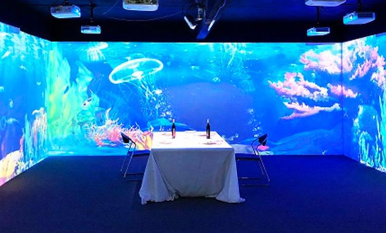 CAVE是一種基于投影的沉浸式虛擬現(xiàn)實(shí)顯示系統(tǒng),其特點(diǎn)是:分辨率高,沉浸感強(qiáng),交互性好。CAVE沉浸式虛擬現(xiàn)實(shí)影院是由3個(gè)以上的投影墻面組成的高度沉浸的虛擬演示環(huán)境,配合三維技術(shù),可以讓參觀者身處一個(gè)三維立體的的沉浸空間中,給參觀者帶來(lái)具有震撼的視覺(jué)效果,身臨其境的沉浸感受。它適用于任何具有沉浸感需求的虛擬仿真應(yīng)用領(lǐng)域,不同類型的展廳展館。比如虛擬設(shè)計(jì)與制造、虛擬生物醫(yī)學(xué)工程、軍事模擬指揮、地震及消防演練仿真、虛擬演示、模擬訓(xùn)練、建筑視景與城市規(guī)劃等。
