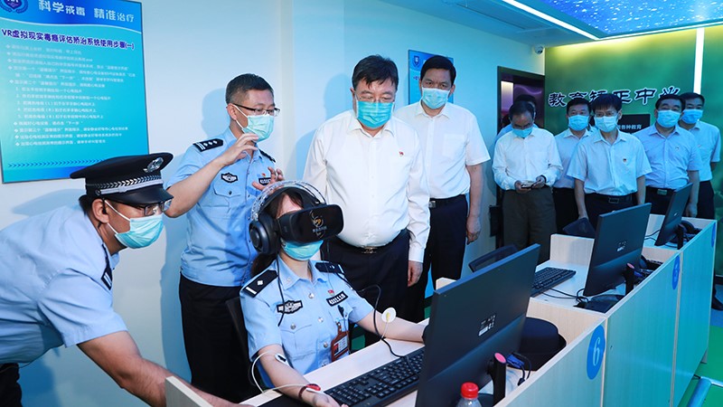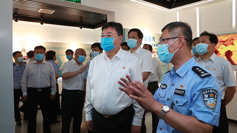 舒慶一行首先參觀了由立標(biāo)展覽依托齊禮閻強(qiáng)制隔離戒毒所建立的鄭州市禁毒教育基地,詳細(xì)了解了基地的規(guī)劃設(shè)計(jì)、陳列內(nèi)容等情況,要求用好這個(gè)平臺(tái),讓更多的群眾特別是青少年前來參觀、接受禁毒教育,使其在禁毒宣傳教育方面發(fā)揮更大的作用。在視頻中心,查看了戒毒人員的學(xué)習(xí)、生活、康復(fù)等情況,對加強(qiáng)吸毒人員戒毒治療、技能培訓(xùn)等提出了指導(dǎo)意見。隨后,主持召開座談會(huì),研究深入推進(jìn)吸毒人員收戒收治與毒品預(yù)防教育工作。